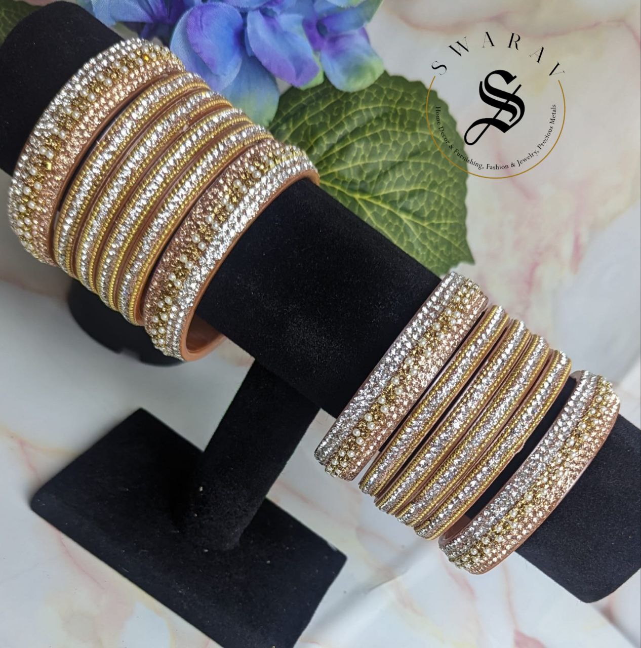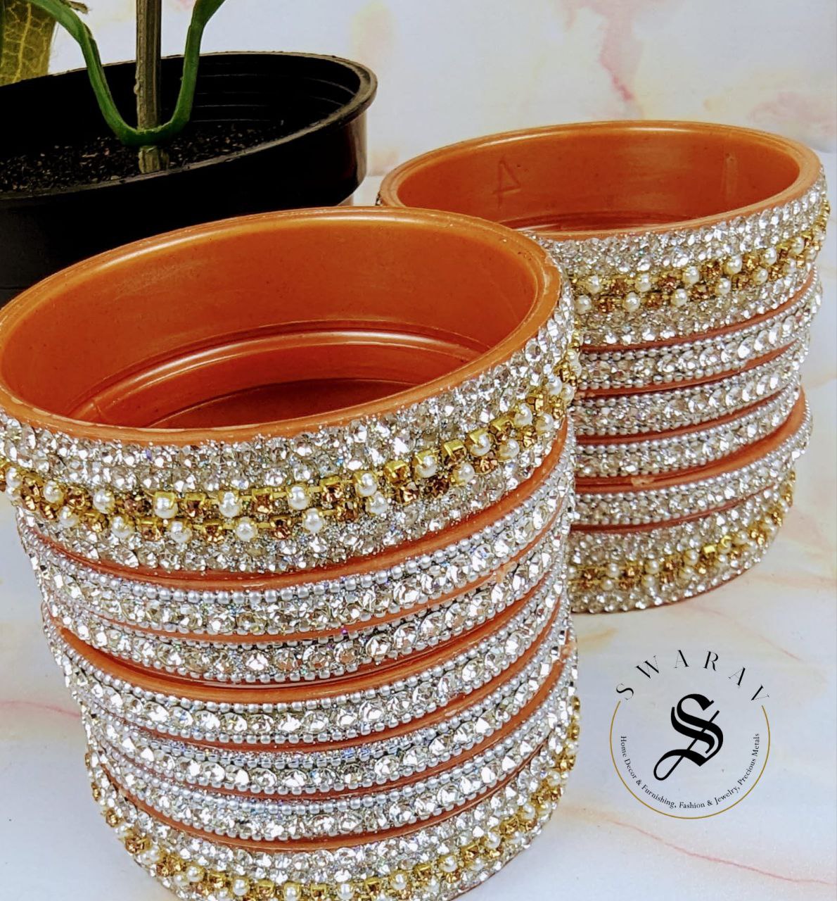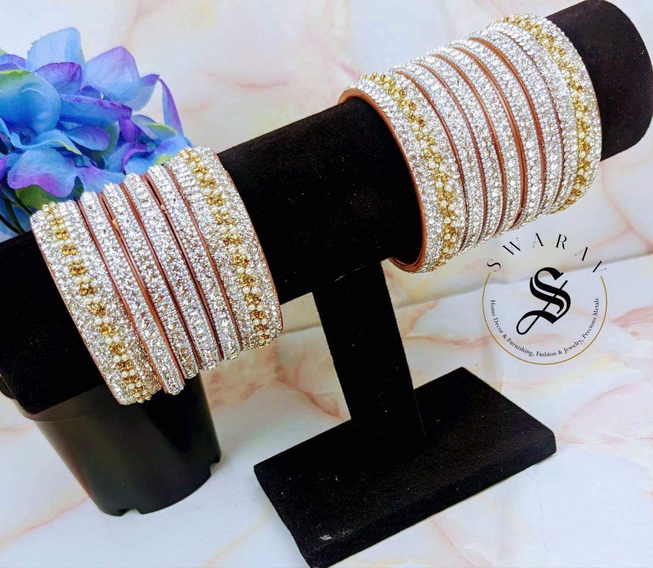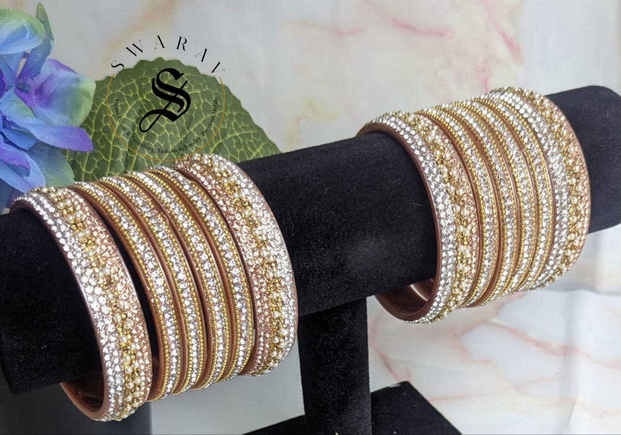 Traditional stone studded 12 Piece beautiful Bangle set on Lakh or Epoxy.