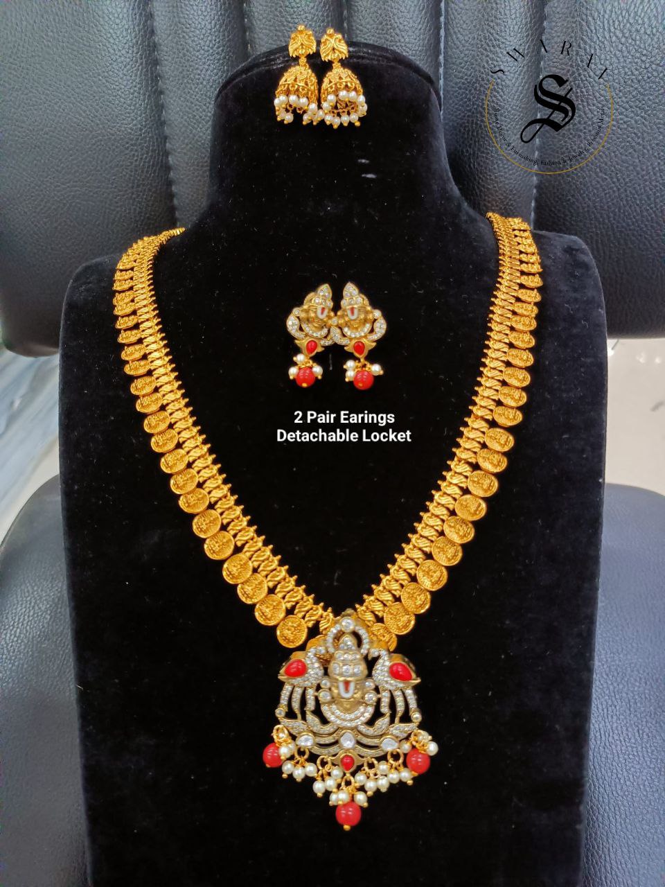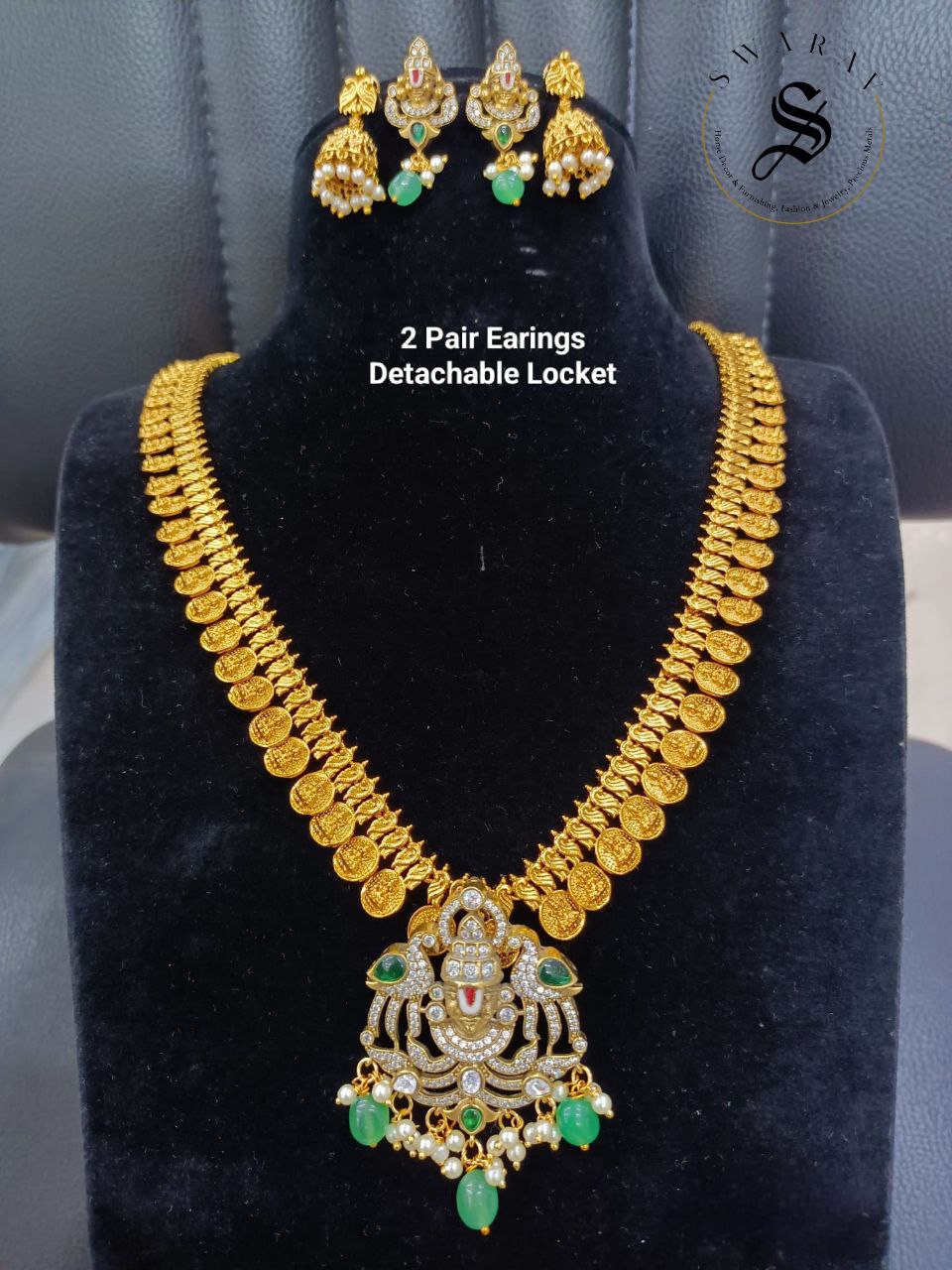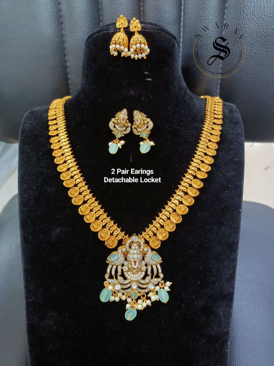 Lakshmi coin/kasu long haar with detachable Balaji pendant and 2 pairs of earrings. 2+ color options inside.