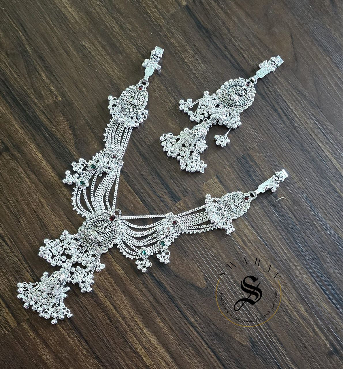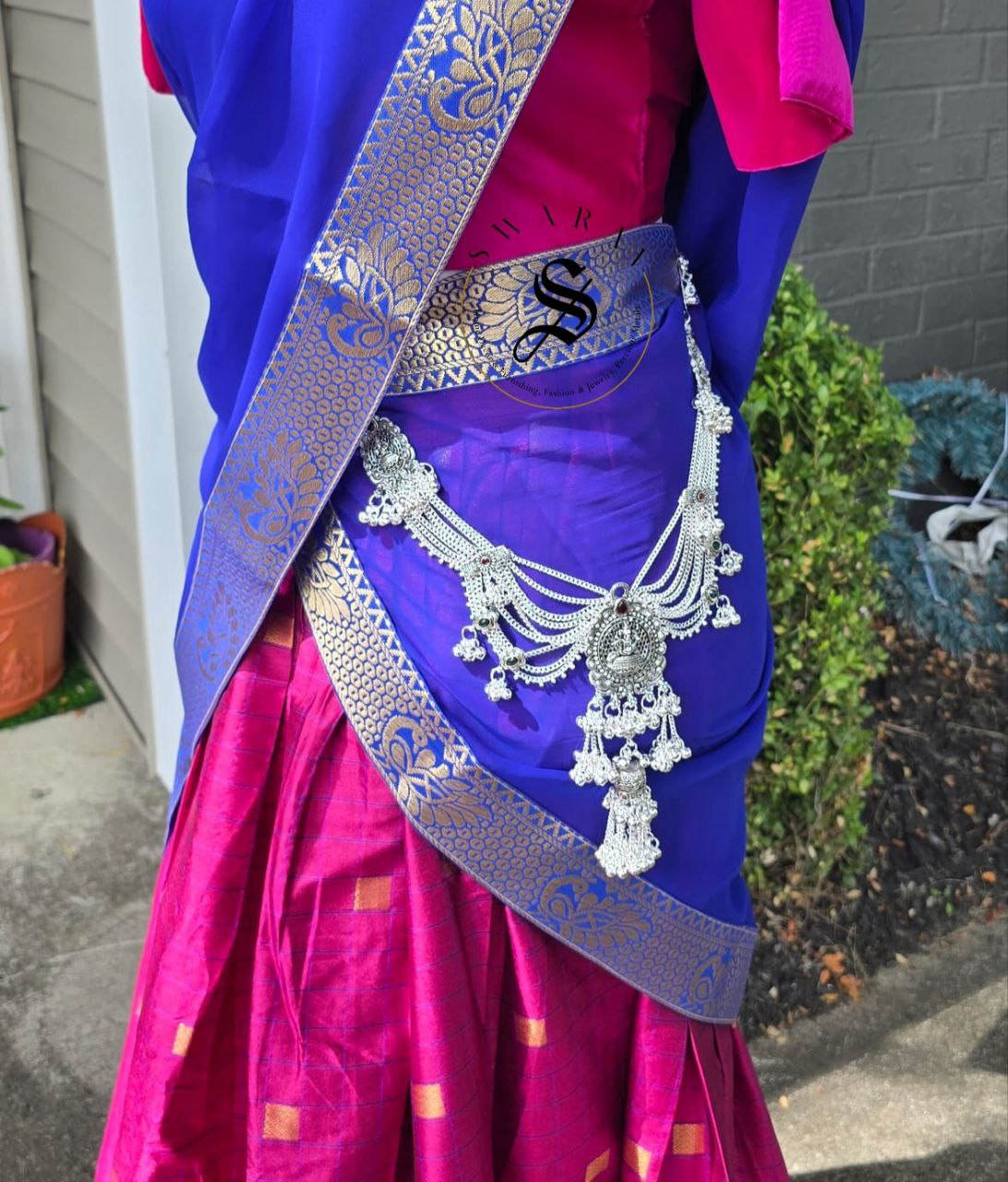 Enhance your traditional Indian Ethnic wear with our stunning Oxydised Silver waist Belt and jewelry set with Chabi Guchcha (key holder).