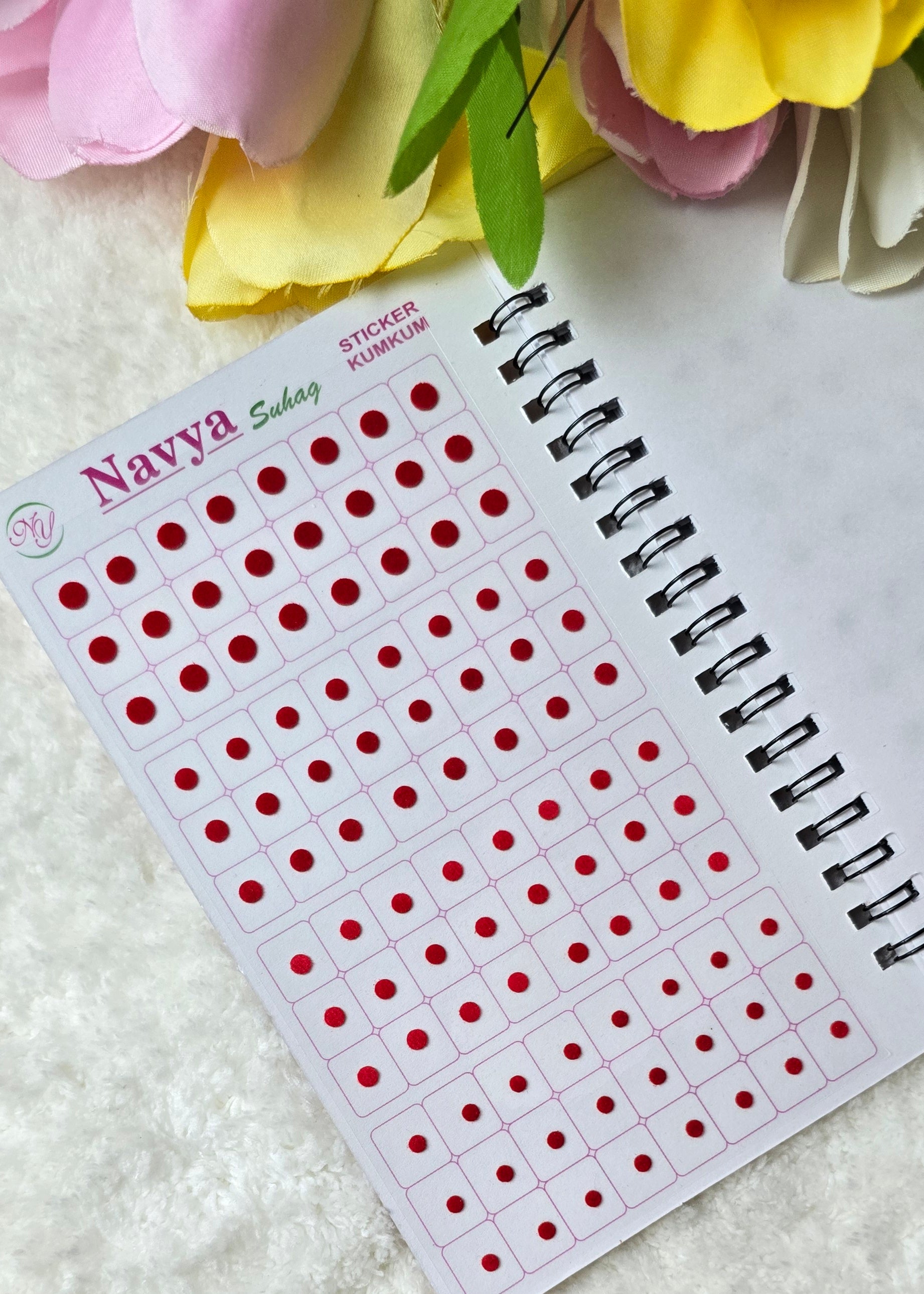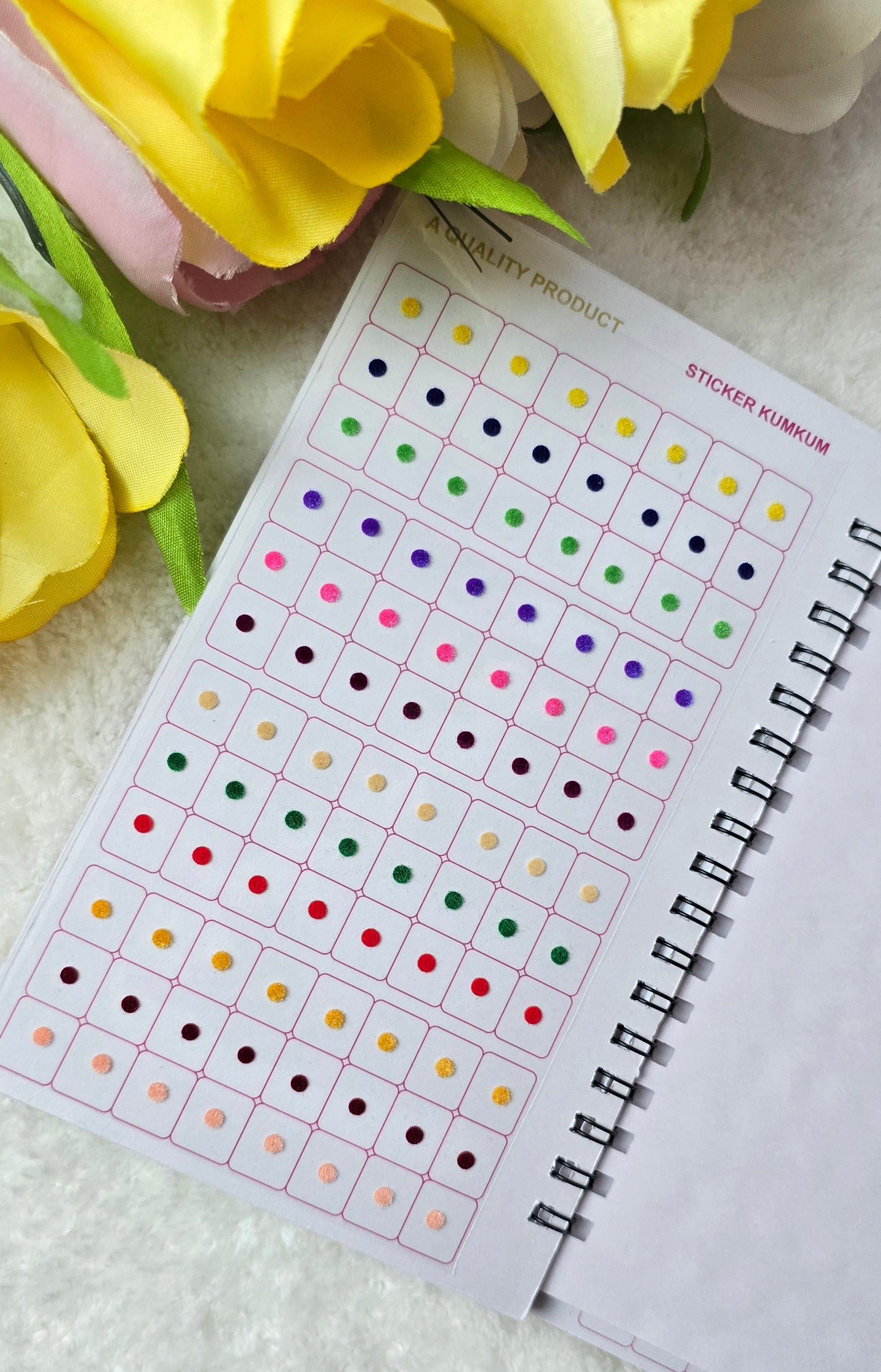 Size and shape of the Bindi - Round, plain and all pages mini sizes e cept last page with assorted size.