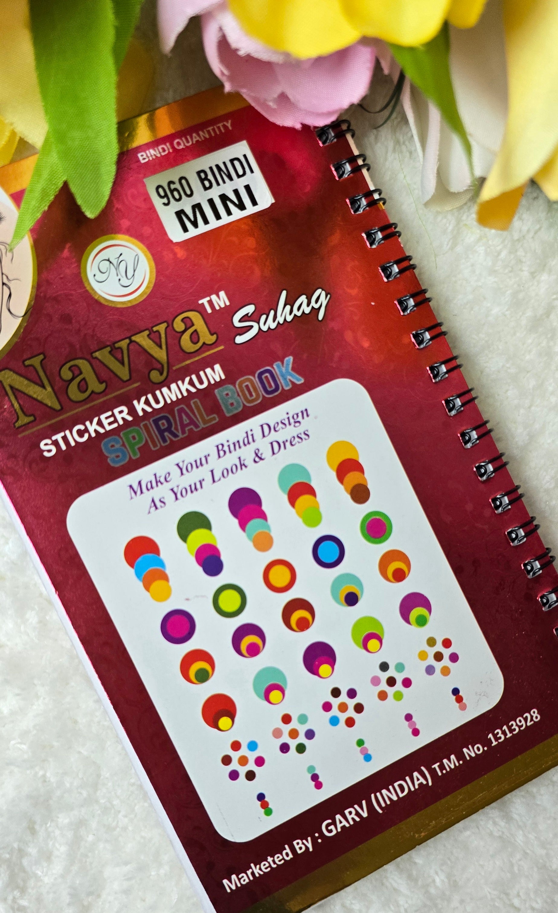 Navya - 960 count multi color and ONE size MINI plain spiral Bindi book.
