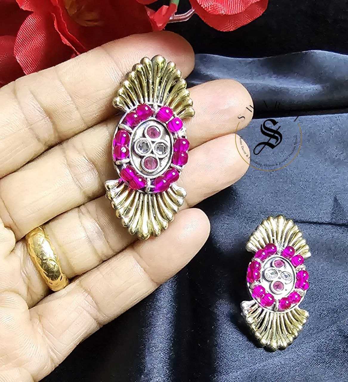 Adorned with magenta beads in the center, these earrings add a touch of elegance to any outfit.