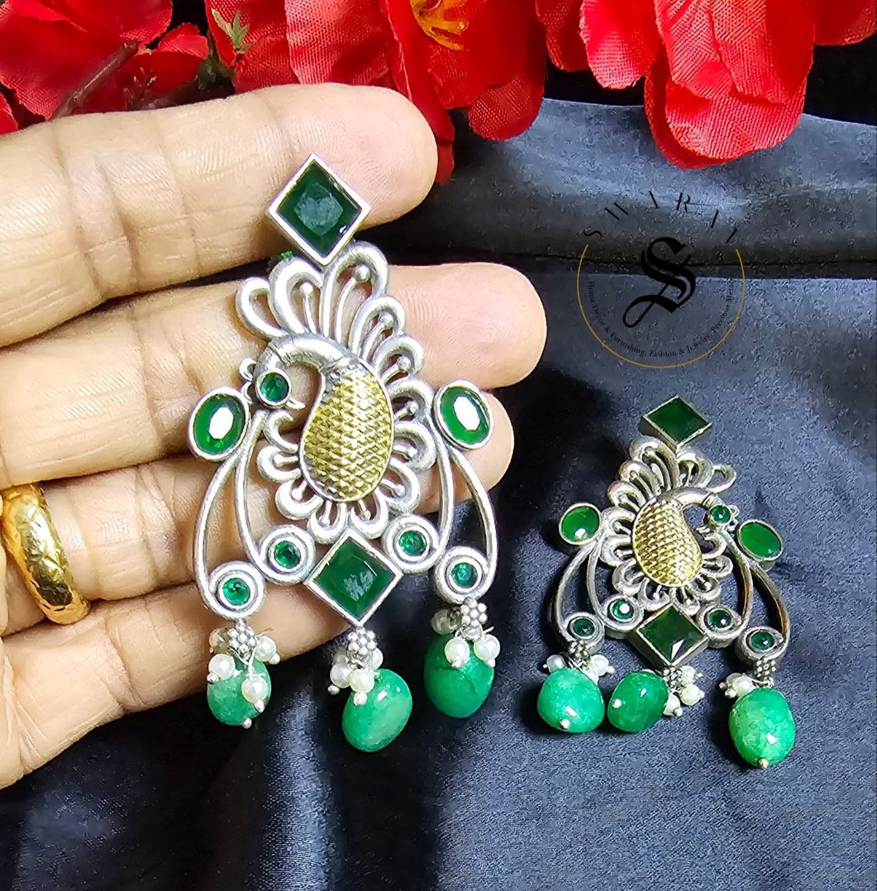 Oxidized handmade earrings - The peacock. Size _ 3 inch approx..