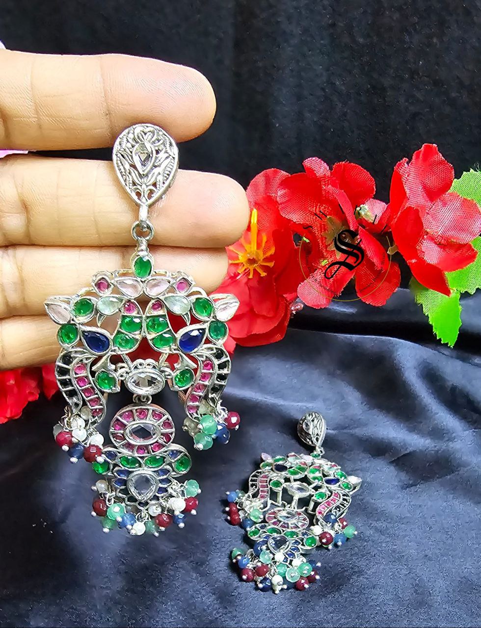 Oxidized handmade multi color stone studded earring. Length - Approx. 5 inches