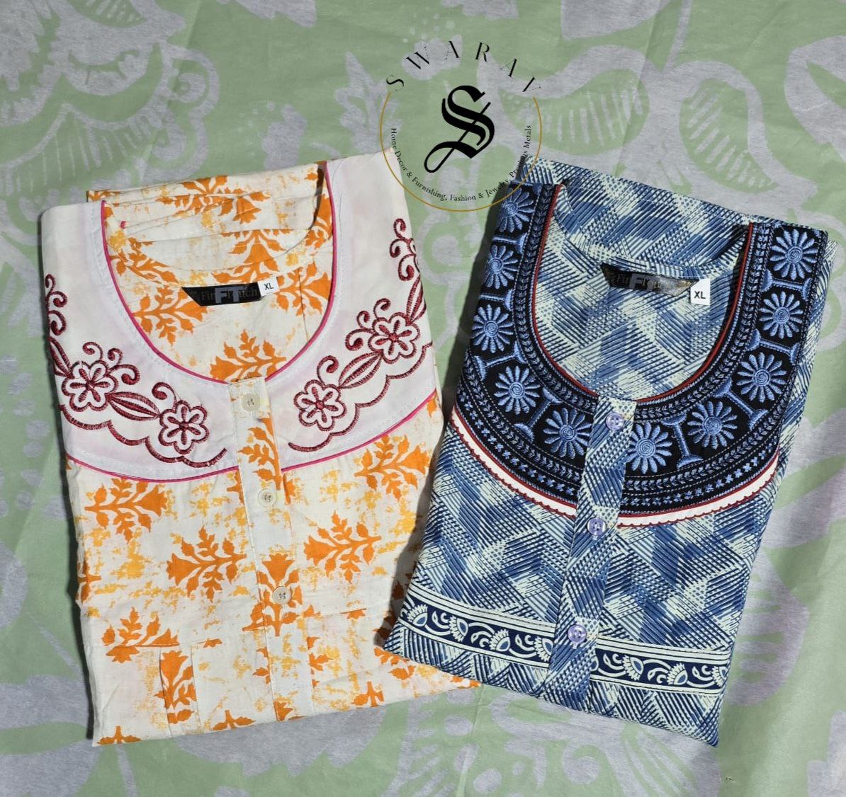 Pack of 2 Pure Jaipur Cotton Women's Nighty / long gown/ Indian nighty. Size - XL. Best fit up to XXL.