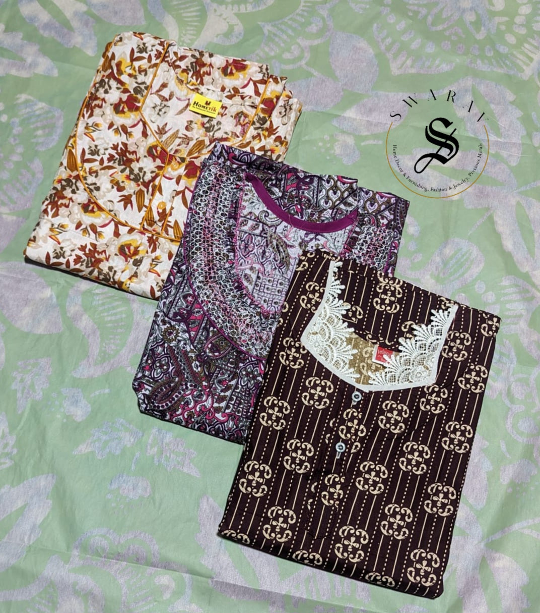 Made with best quality breathable cotton, these nighties add comfort to your night wear. suitable for all skin types and appropriate for all seasons through out the year.