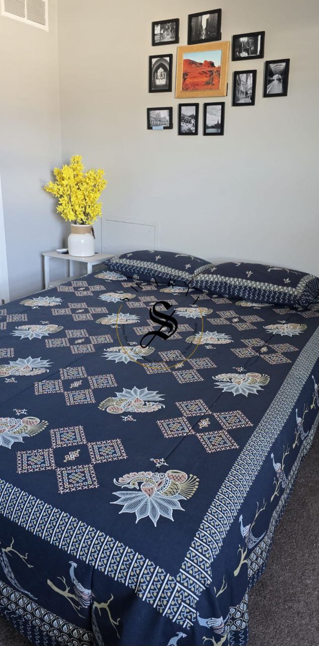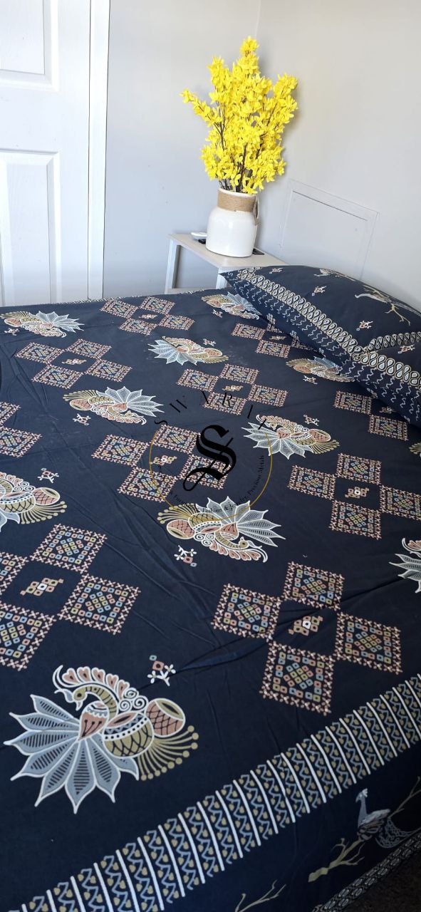 Pure cotton Jaipur Queen size Flat Bedsheet with 2 pillow covers- the soft comfortable Cotton comfort that you have been looking for in bedsheets.