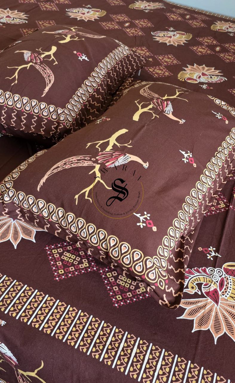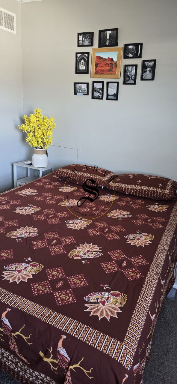 Jaipur Pure Cotton Queen Size Flat sheet Set - 102 by 88 inch. Maroon Base with peacock design.