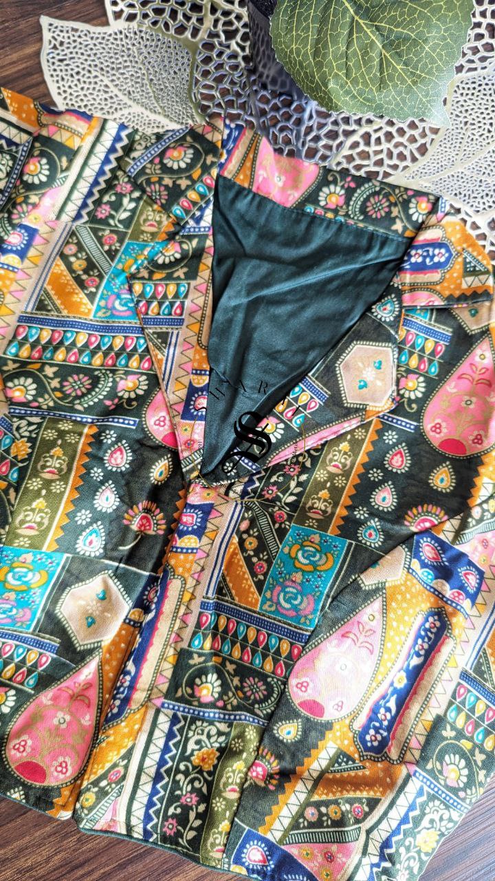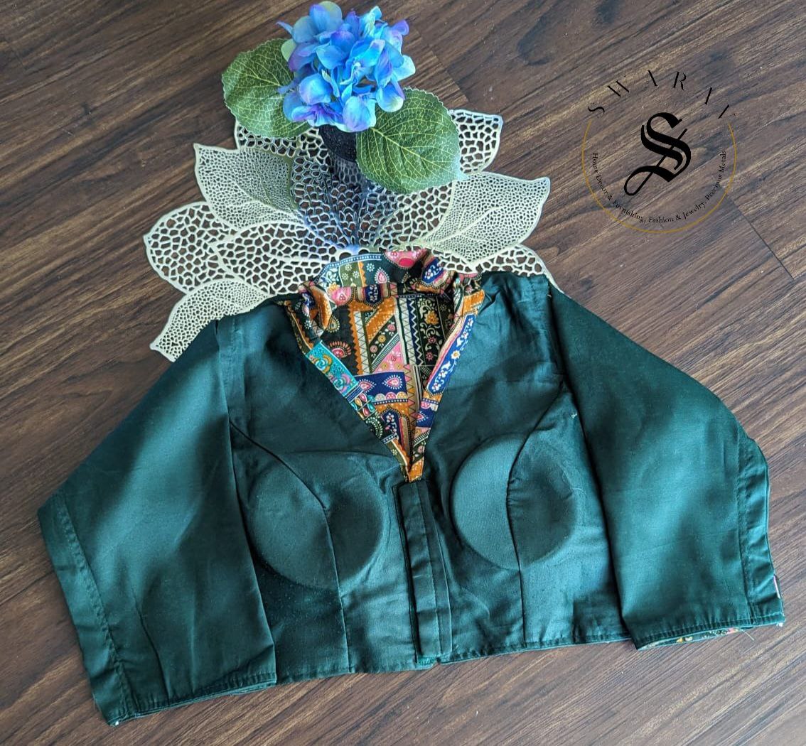 Ready to wear soft Rayon cotton coat collar designer blouse with 3/4th Sleeve. Color - bottle Green. Size - 38 to 42 inches.