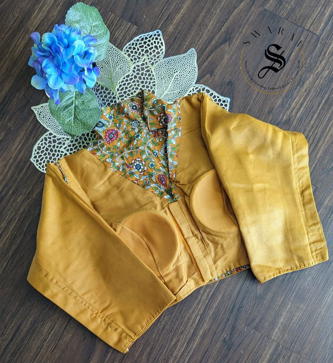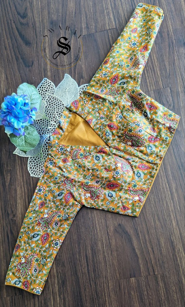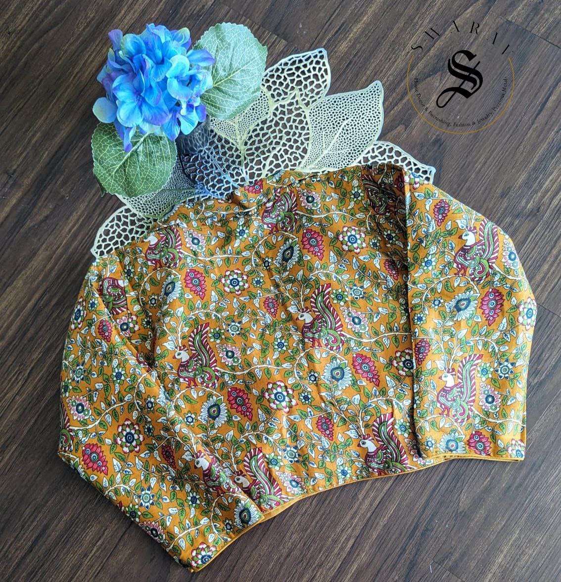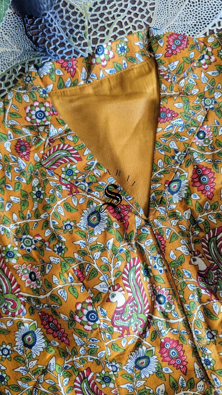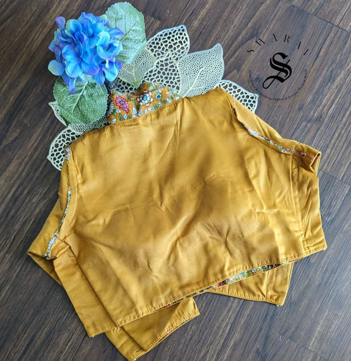Ready to wear soft Rayon cotton coat collar designer blouse with 3/4th Sleeve. Color - Mustard Yellow. Size - 38 to 42 inches.