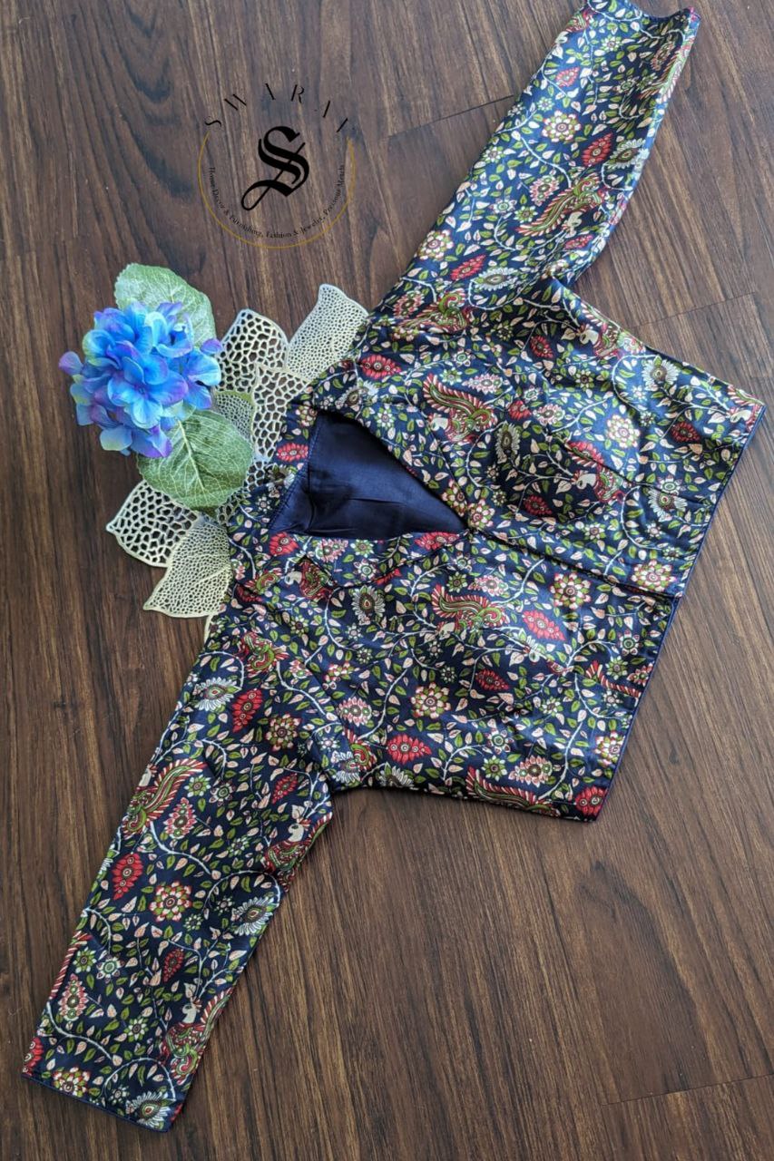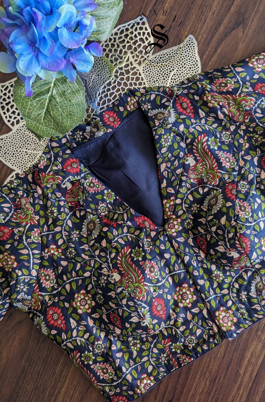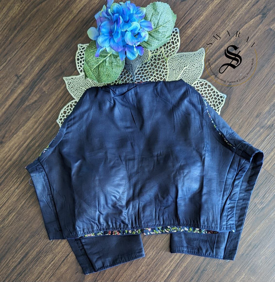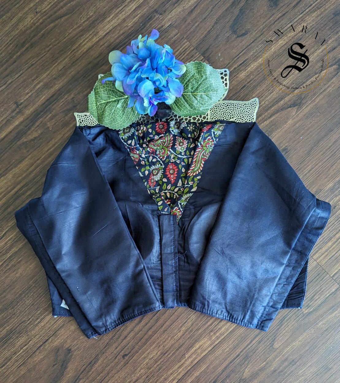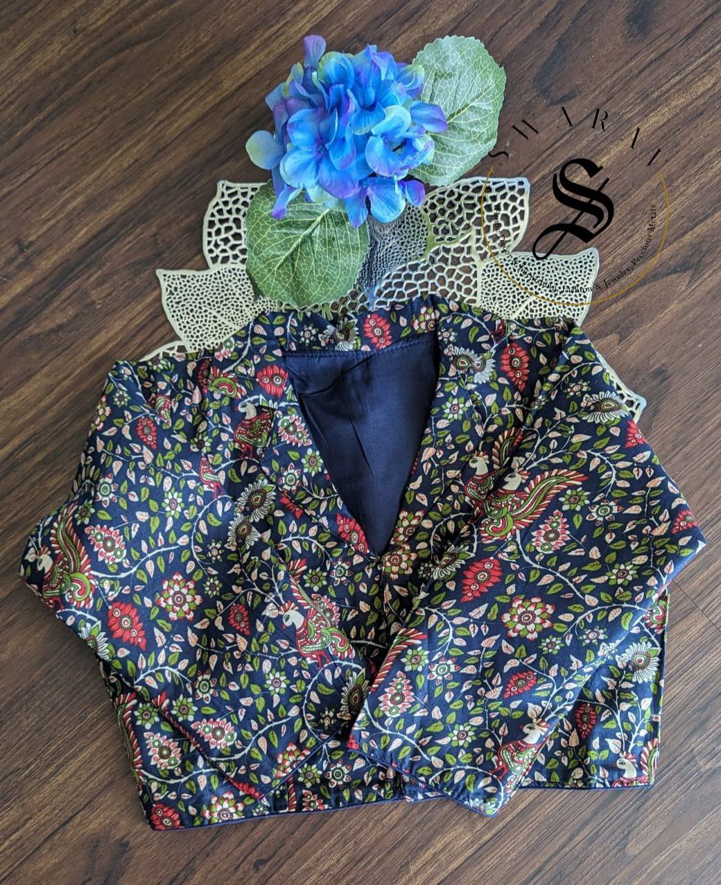 Ready to wear soft Rayon cotton coat collar designer blouse with 3/4th Sleeve. Color - Navy Blue. Size - 38 to 42 inches.