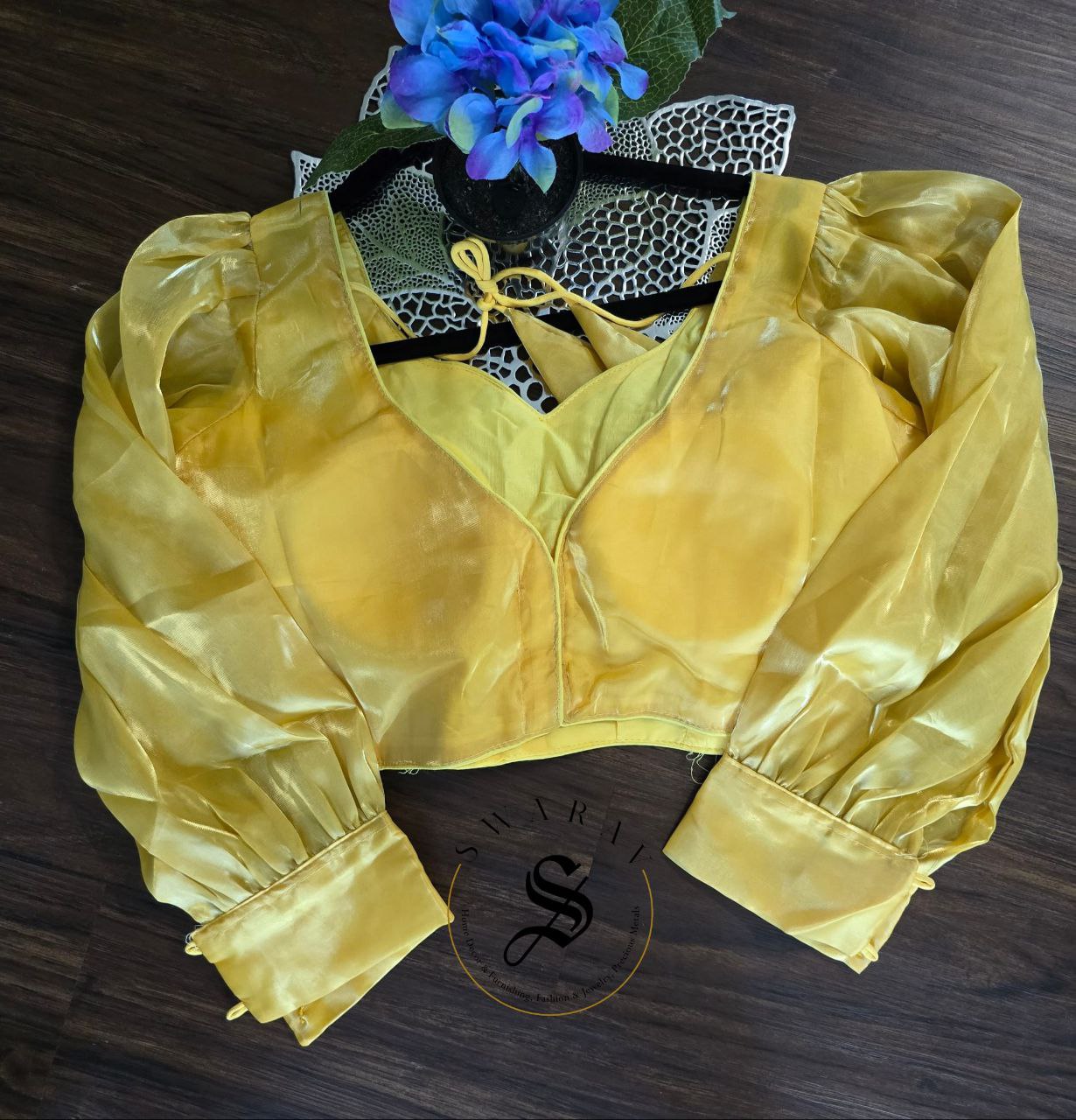 Ready to wear Tissue silk puffed full sleeve Blouse. Size : 38 ready to wear with margin up to 40.