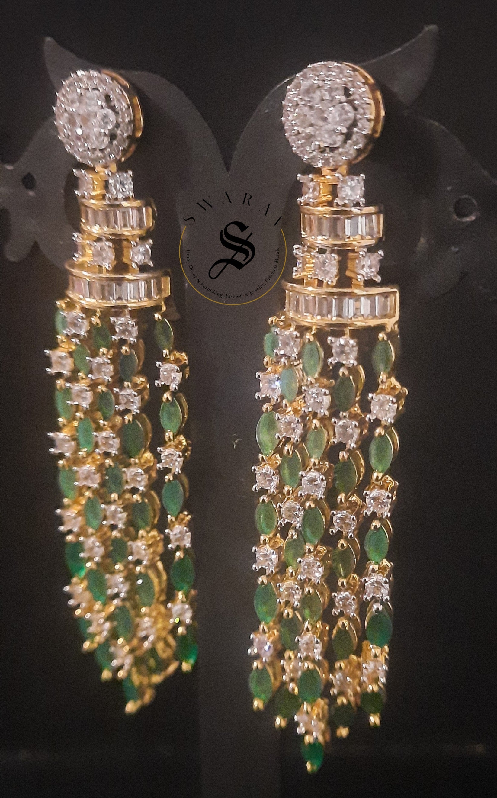 - Indulge yourself with these stunning CZ and green stone earrings - a unique and beloved choice for those seeking lightweight, long earrings.