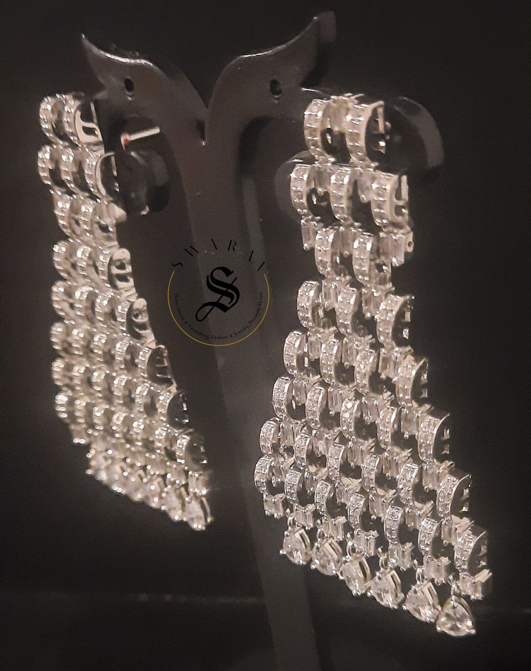 Real Cubic Zircon (CZ) studded beautiful multi line pyramid earrings - New York Fashion week inspired high end premium Jewelry .