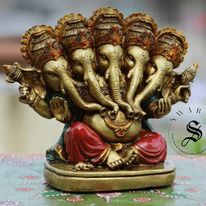 Panchamukhi Ganesha or five face Ganesha usually denotes to five potencies or sheaths of human life which are Pranamaya, Annamaya, Vigyanmaya, Manomaya and Anandamaya. It is usually beleived that placing panchamukhi Ganesha towards the east of home creates positive vibes in the house.