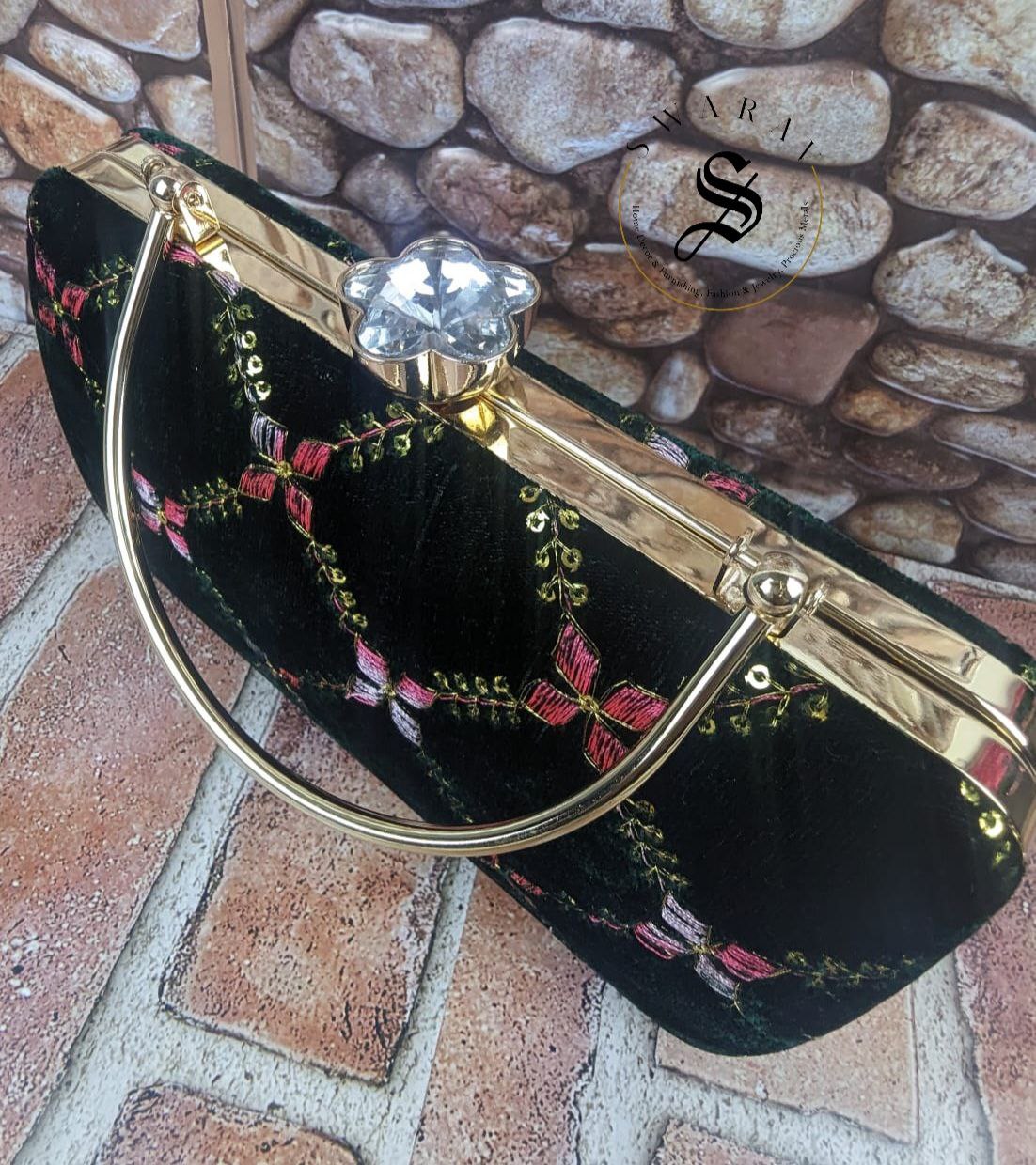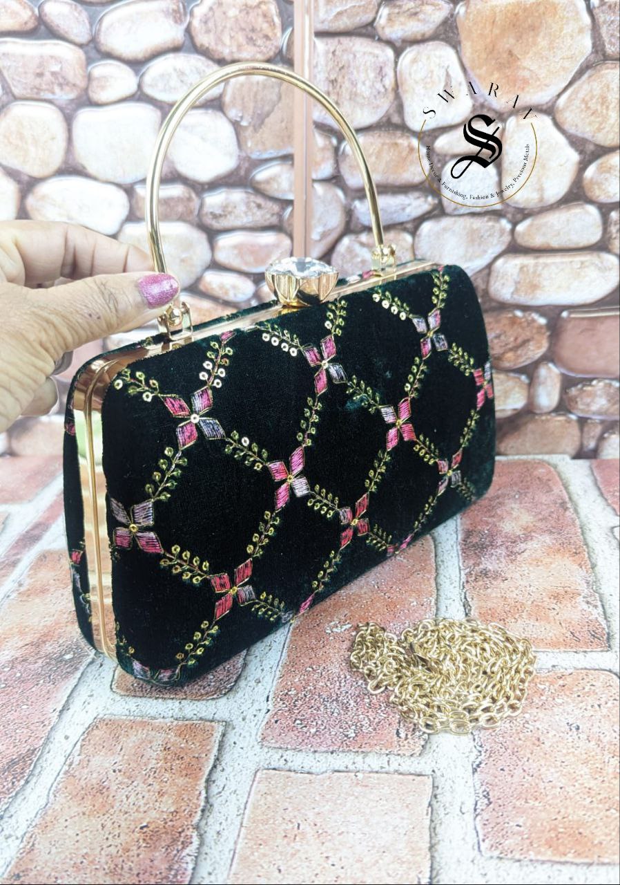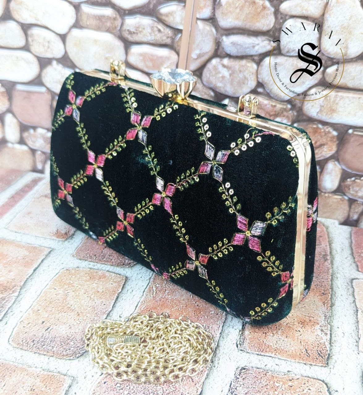 Introducing the ultimate party clutch - with sequence and embroidered style on soft velvet fabric!
