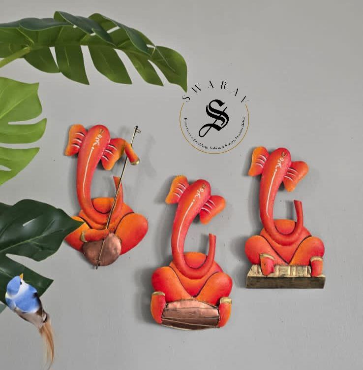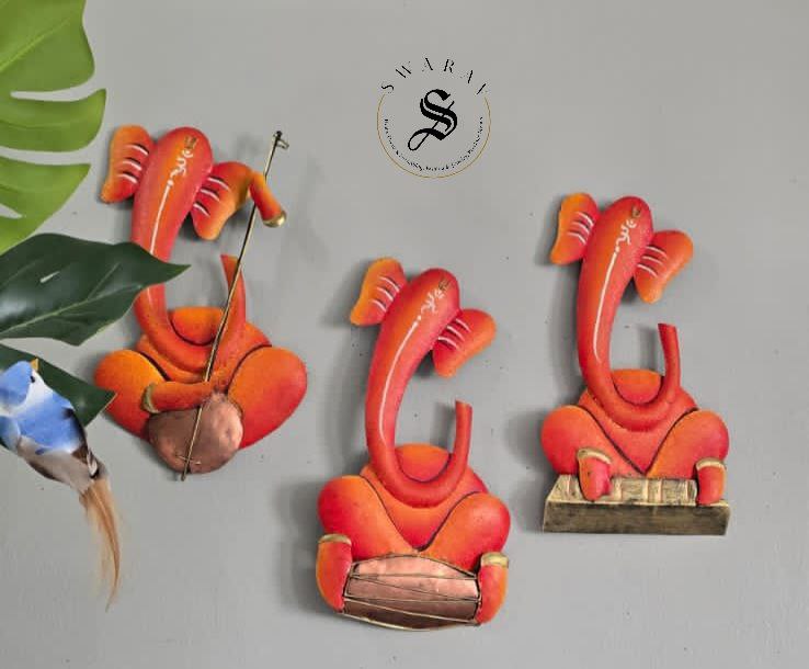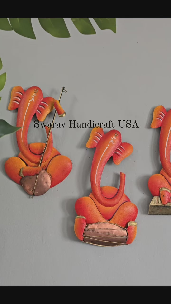 Set of 3 - wrought iron musical Ganesha set