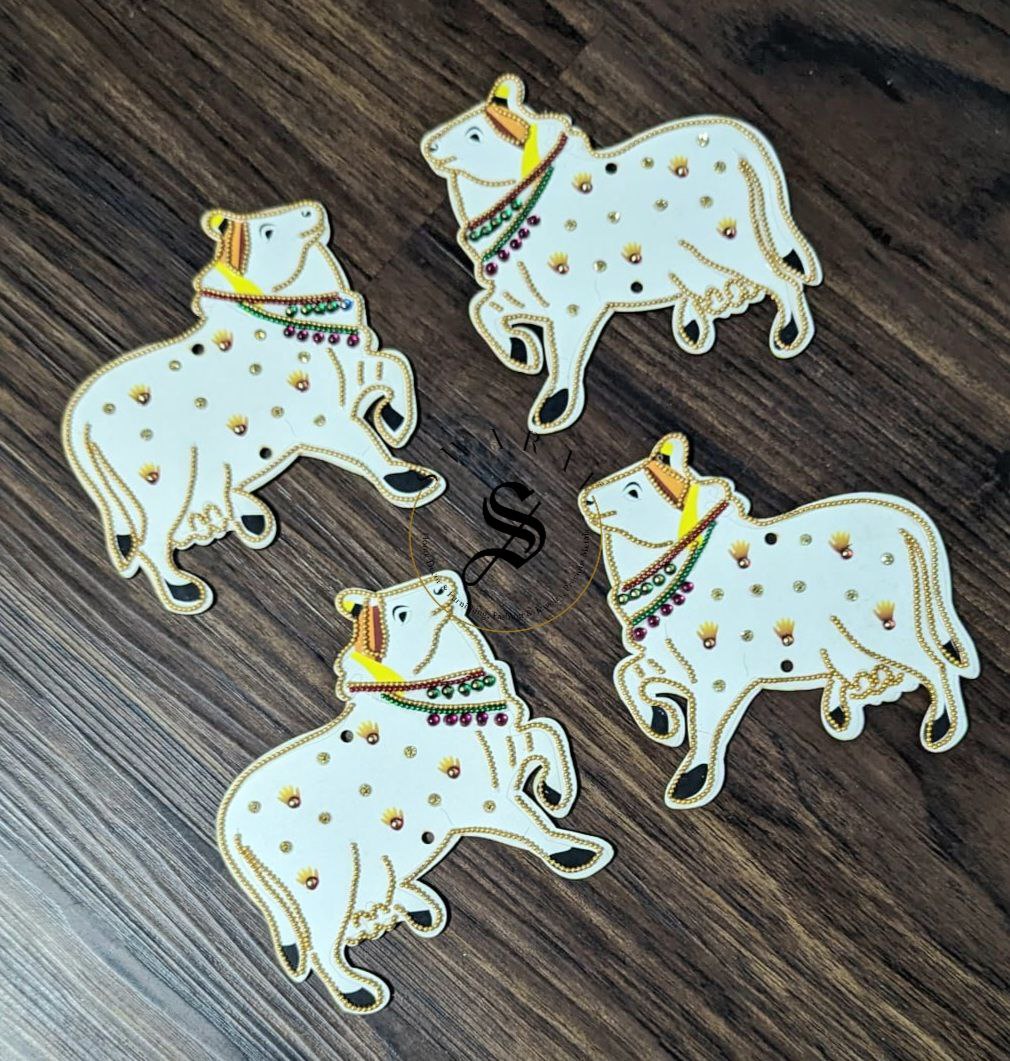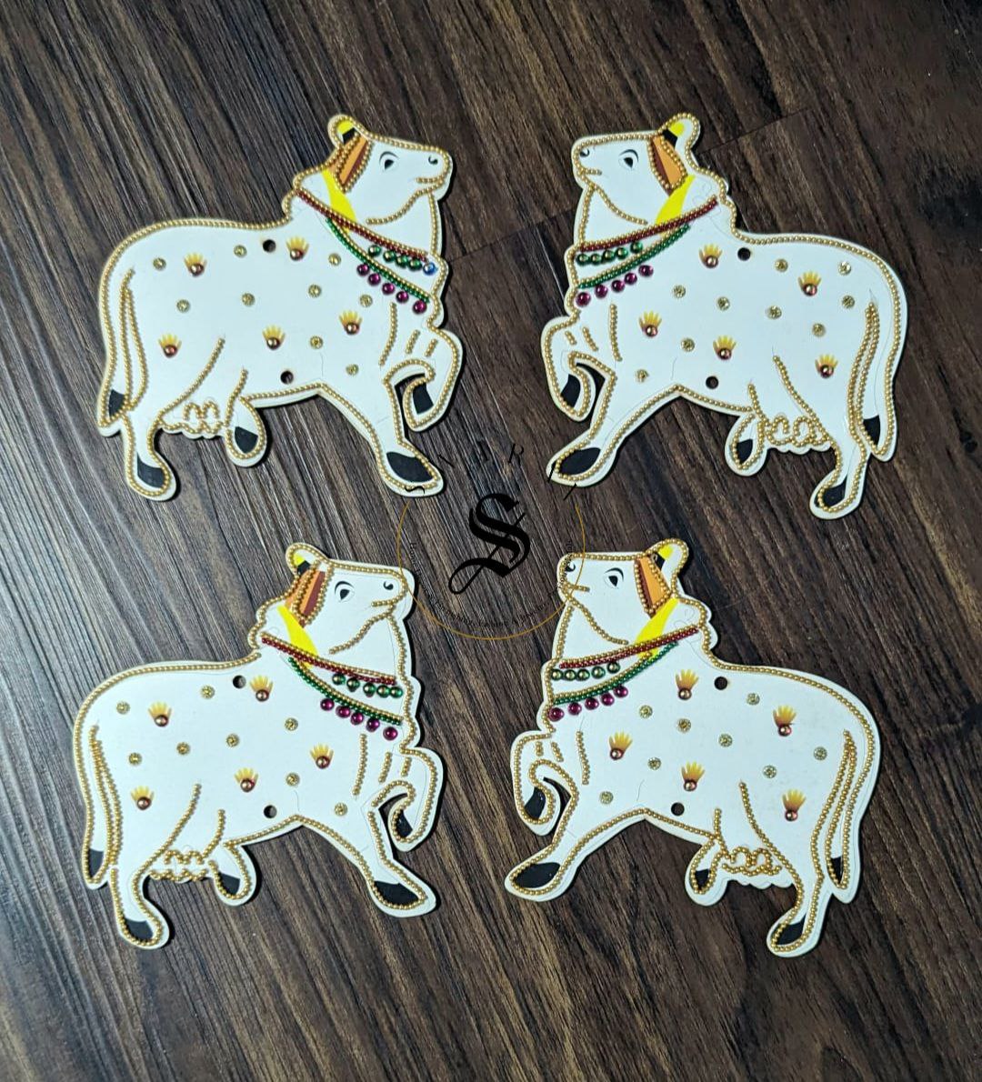 Set of 4 - MDF cut Cow décor with sequence and stone work.