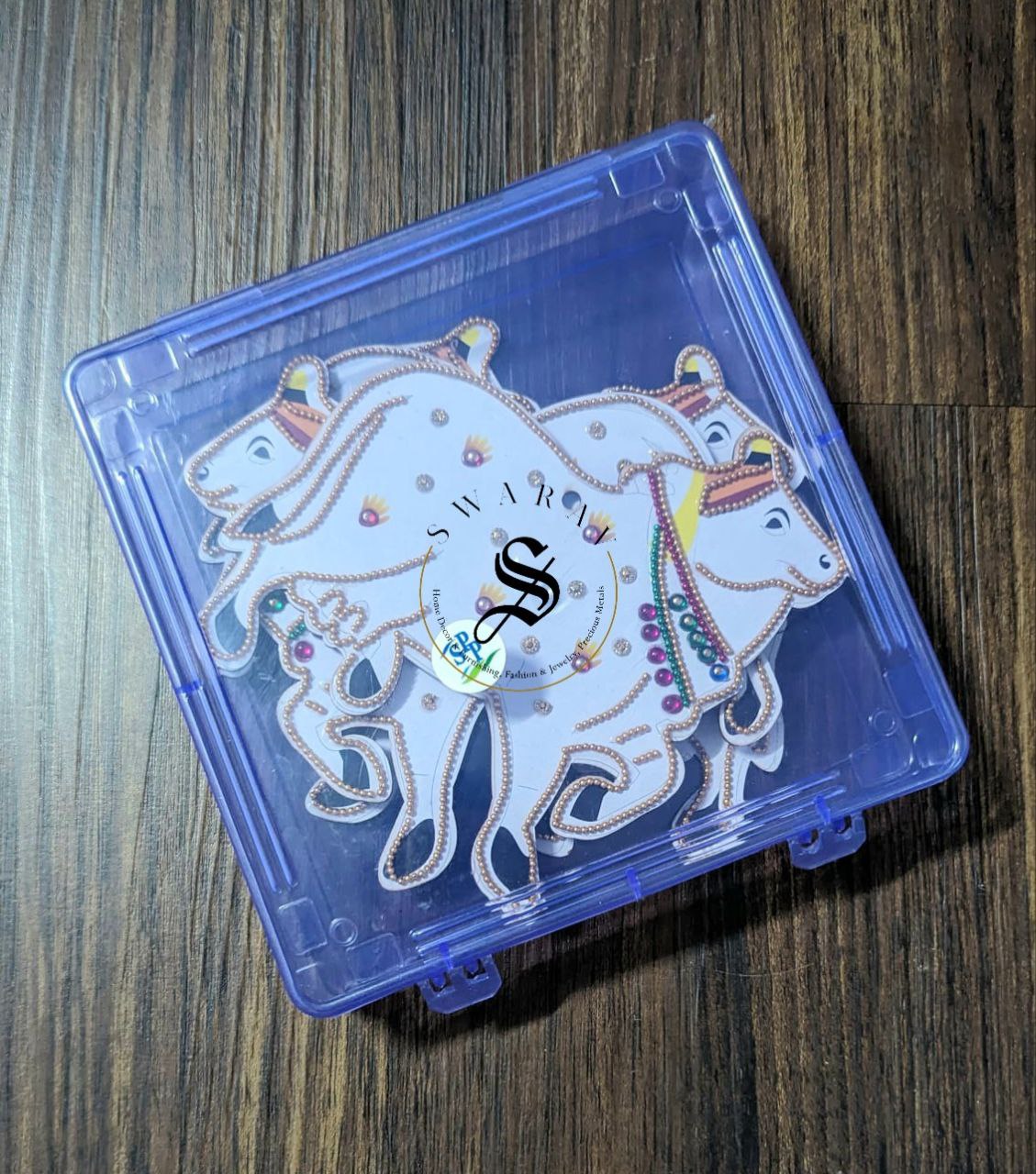 Pair these cow figurines with our other Acrylic Rangoli and Faux flowers to create a positive vibrant auspicious ambience during festivities and celebrations.