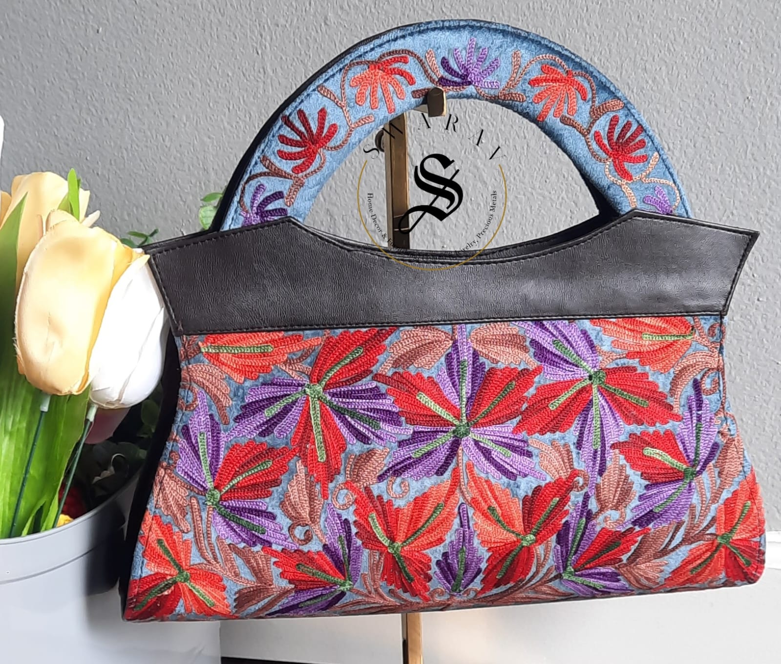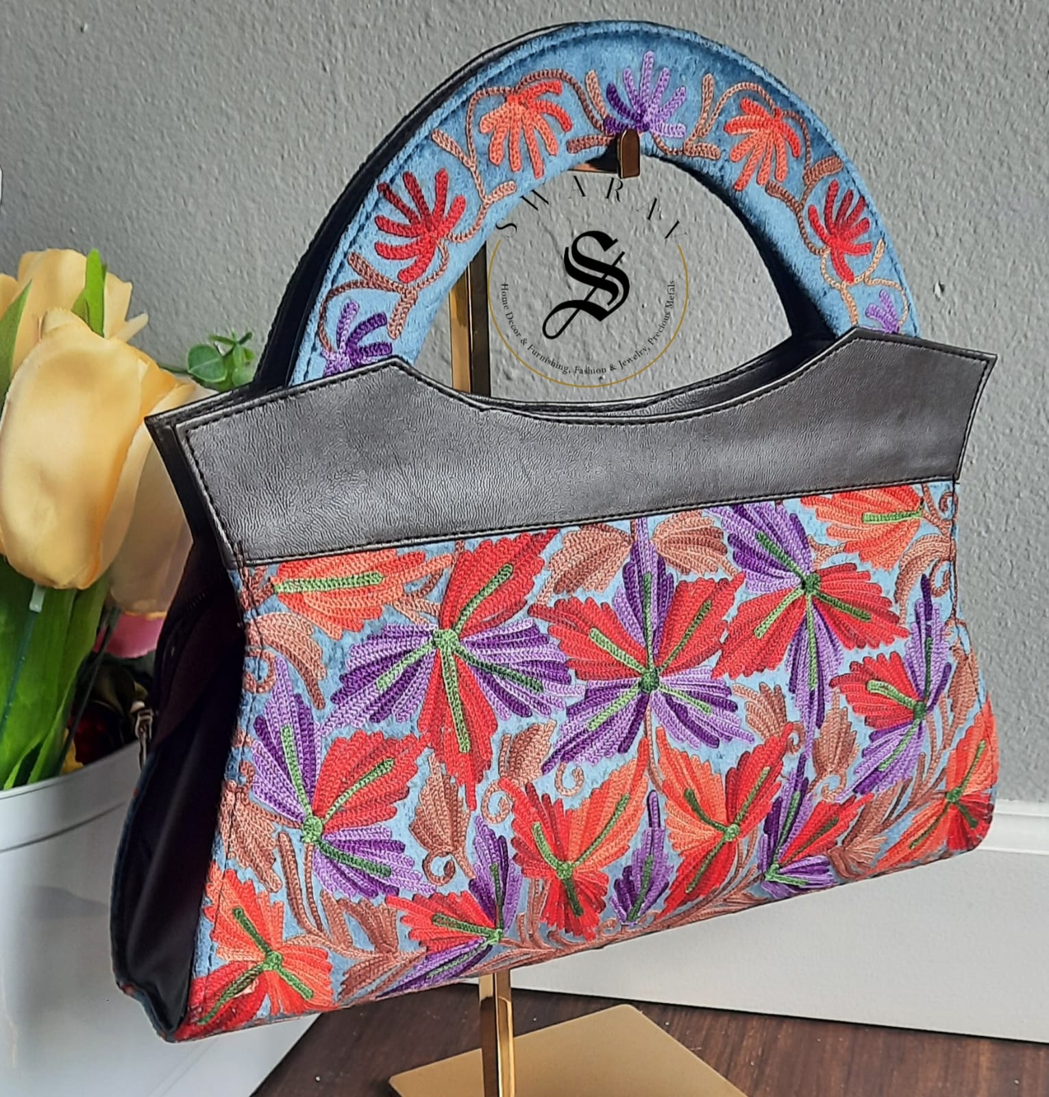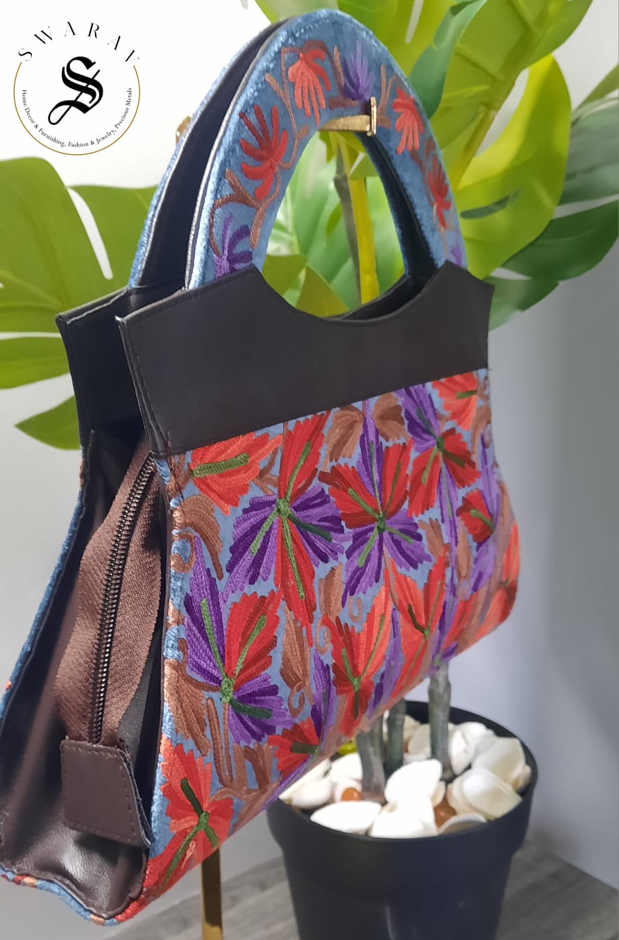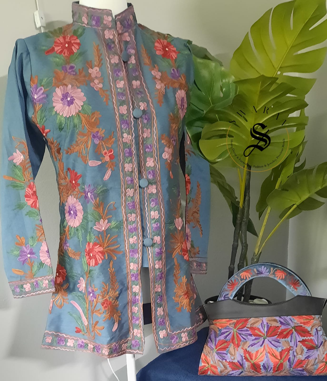 A beautiful Hand Embroidered Kashmiri Ari work Jacket with matching Hand purse is all needed to make a style statement of your own when you pair it with a Legging or Jeans or Pants.