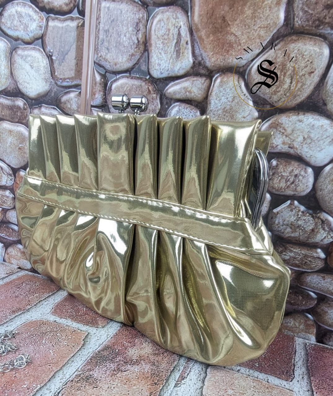 This 9 by 5 inch clutch, features soft faux leather and a golden shiny color for a luxurious touch.