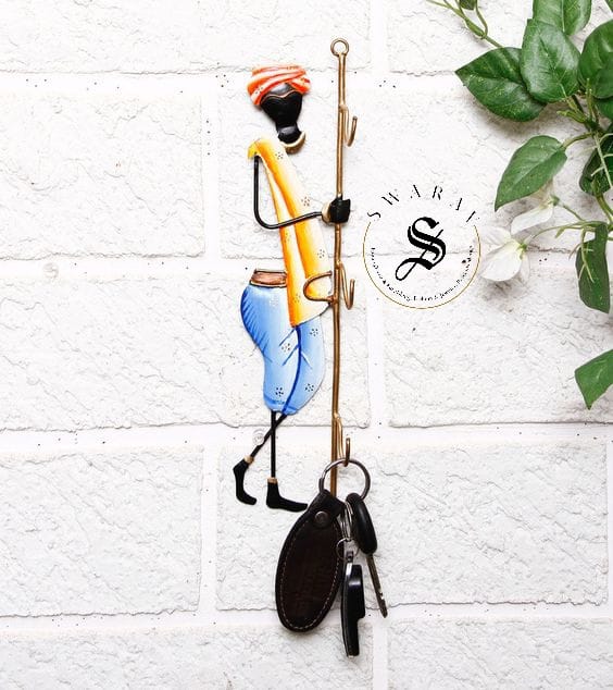 Now organize and keep all your important keys within your reach and eyesight with this beautiful Wrought iron Village man theme Pitwa art Key hanger.